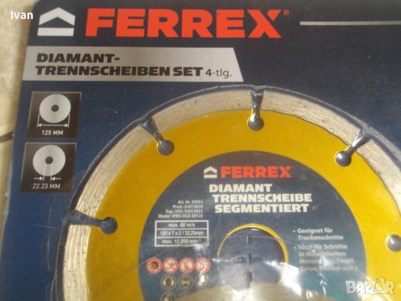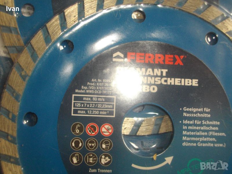 Дисковете FERREX са австрийско производство, професионални - за машини със скорост до 12 250 об/мин. Размер ф 125 х 22,3 х 7 мм.