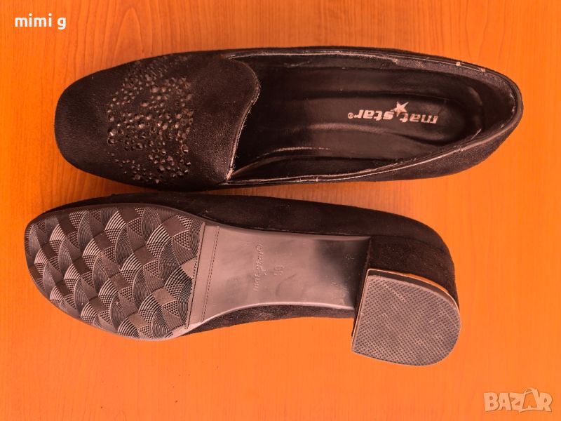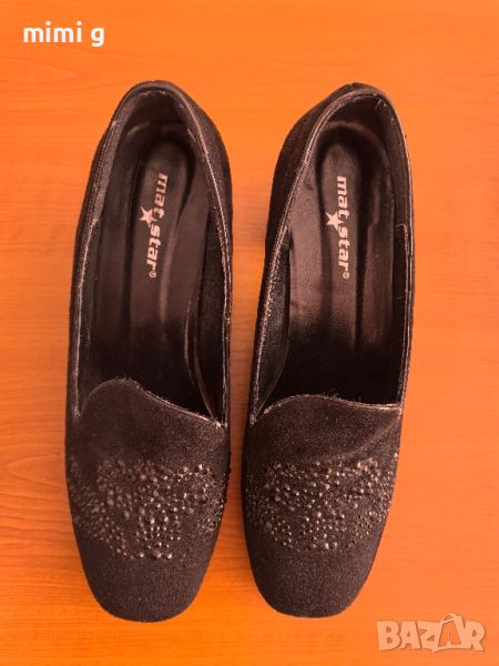 Нови елегантни обувки, изработени от еко велур с обков от черни камъни. Закупени от Матстар. Без оригинална опаковка.