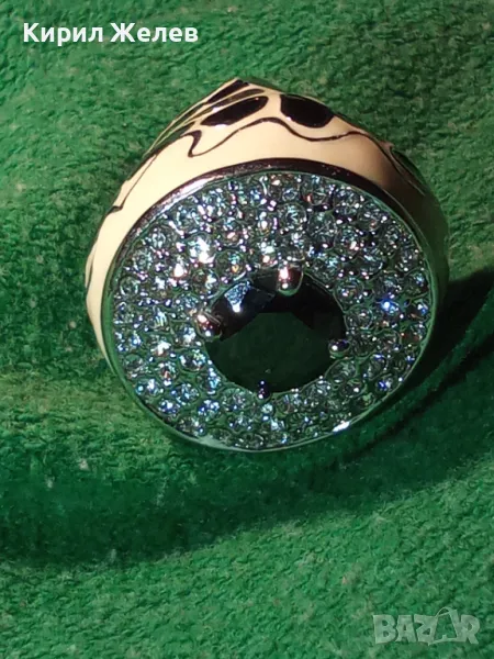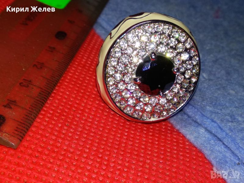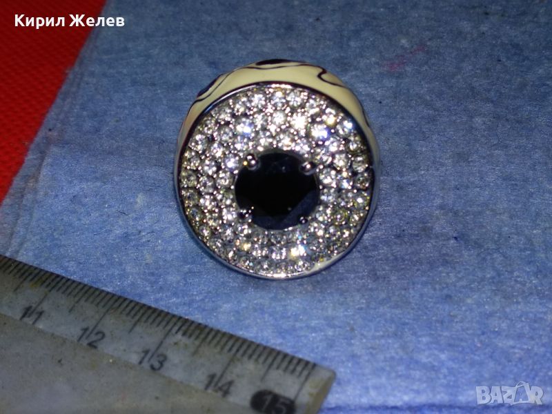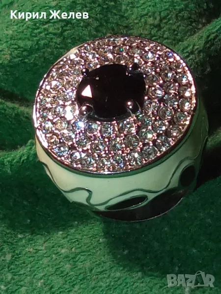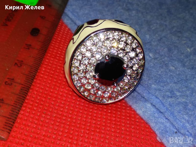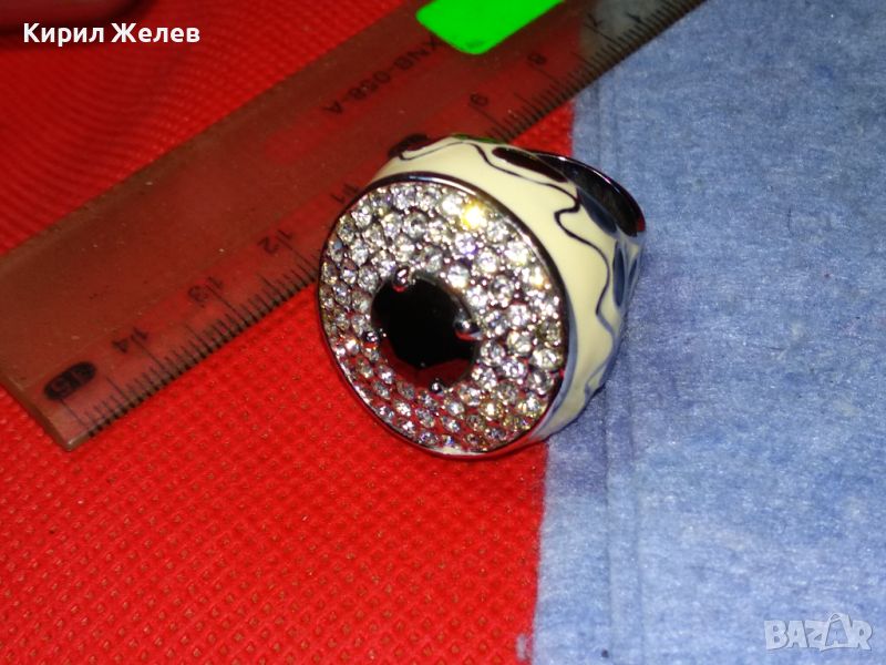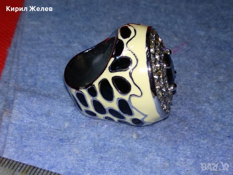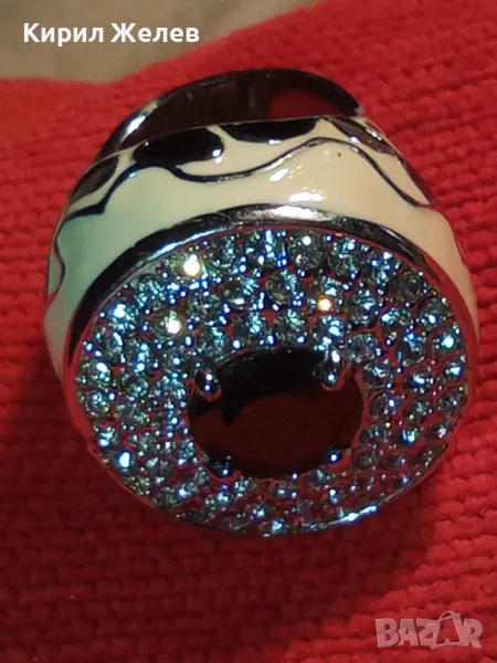 ЕФЕКТЕН ОГРОМЕН ЕМАЙЛИРАН КРИСТАЛЕН НИКЕЛИРАН МЕДЕН ПРЪСТЕН 44154