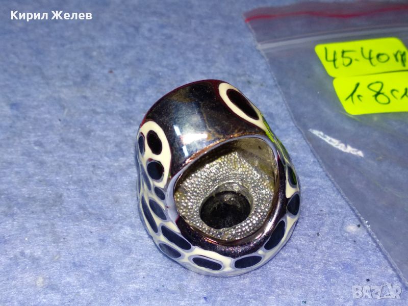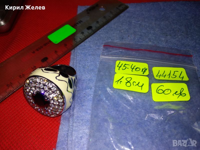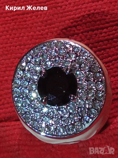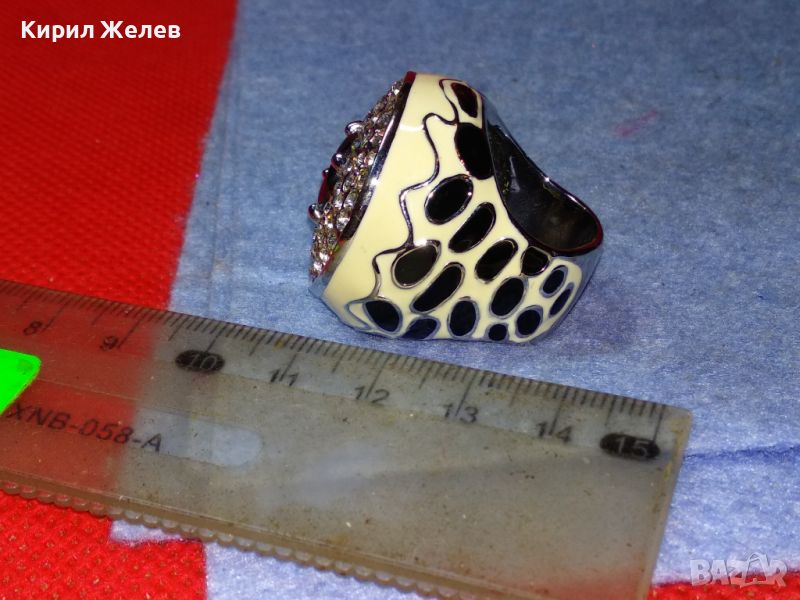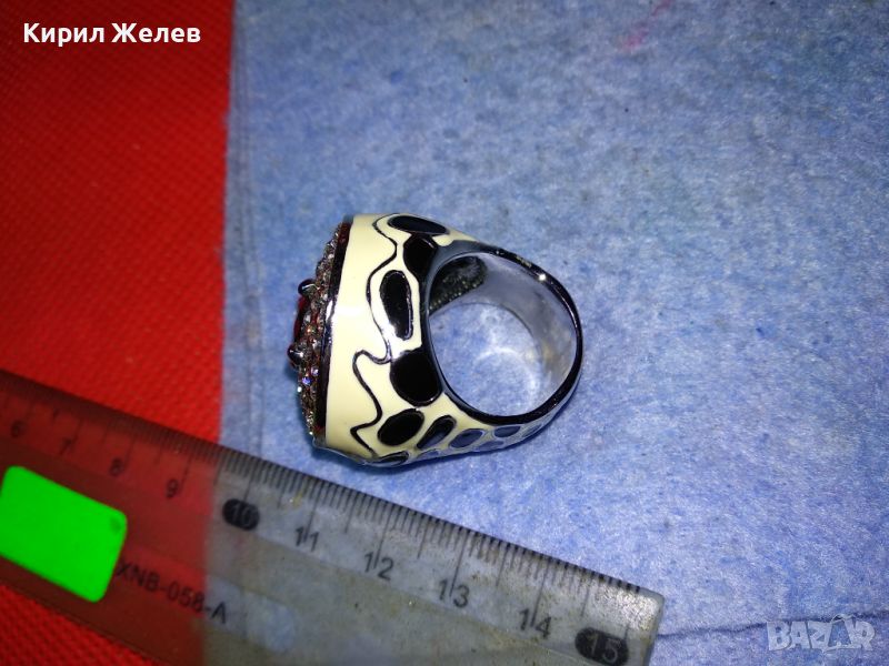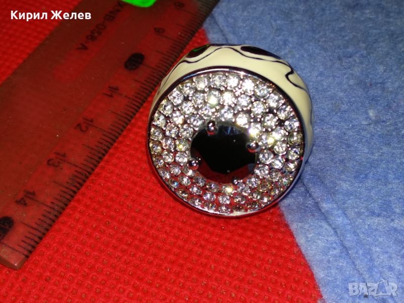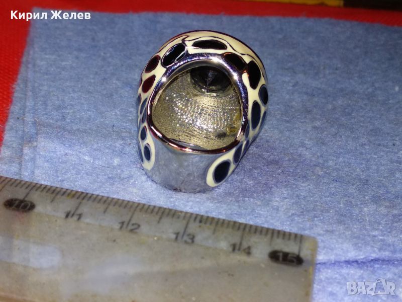 ЕФЕКТЕН ОГРОМЕН ЕМАЙЛИРАН КРИСТАЛЕН НИКЕЛИРАН МЕДЕН ПРЪСТЕН 44154