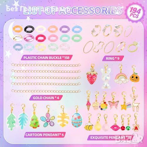 Творчество и въображение: Комплектът стимулира детската креативност и въображение, позволявайки им да създават уникални колиета.