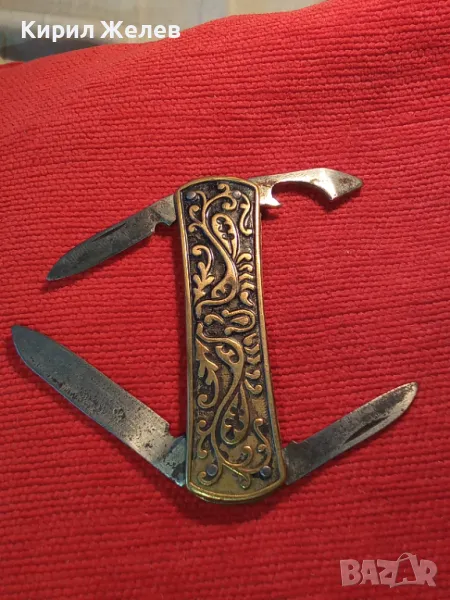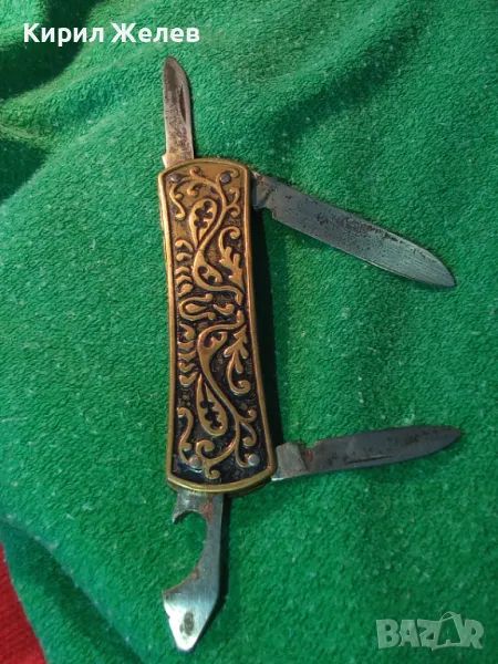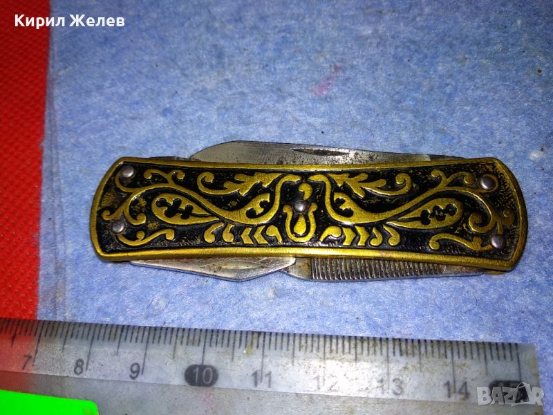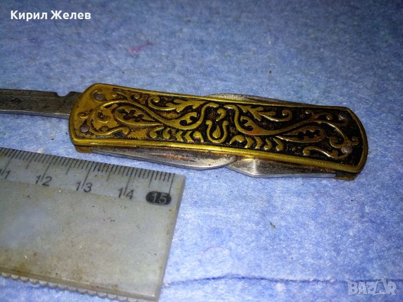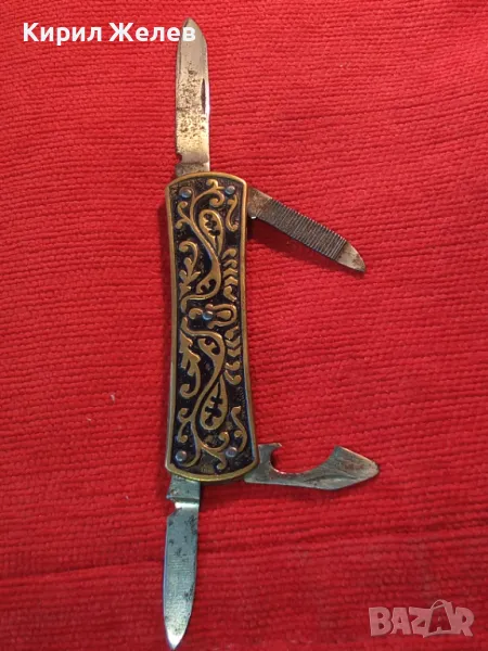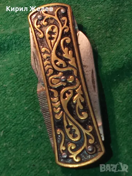 Старо КОЛЕКЦИОНЕРСКО РУСКО ДЖОБНО НОЖЧЕ с ОРНАМЕНТИРАНИ МЕСИНГОВИ ЧИРЕНИ 46828