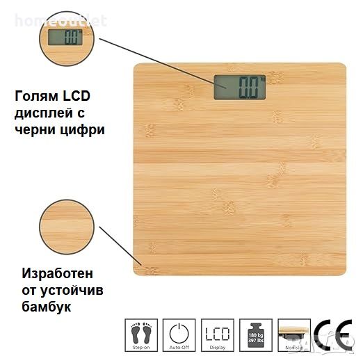 Лесна за използване бамбукова везна за баня с голям LCD дисплей.