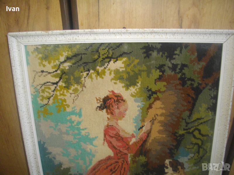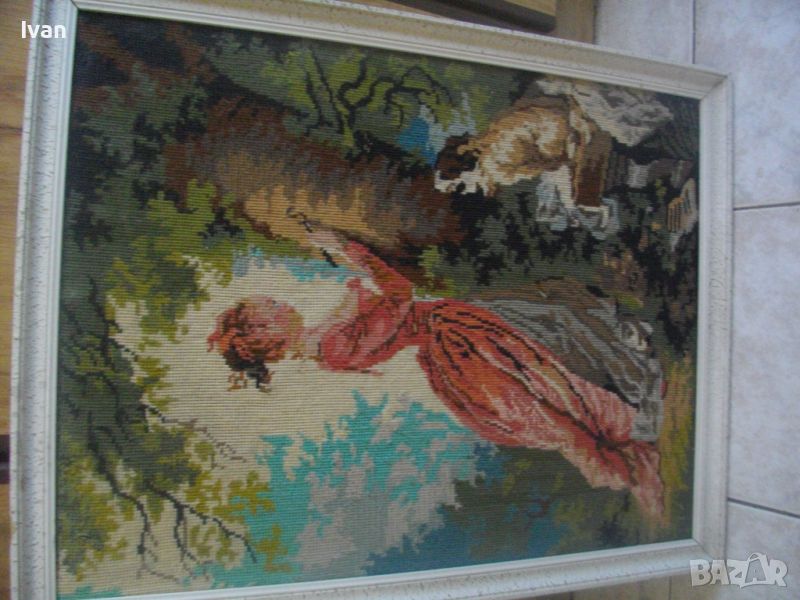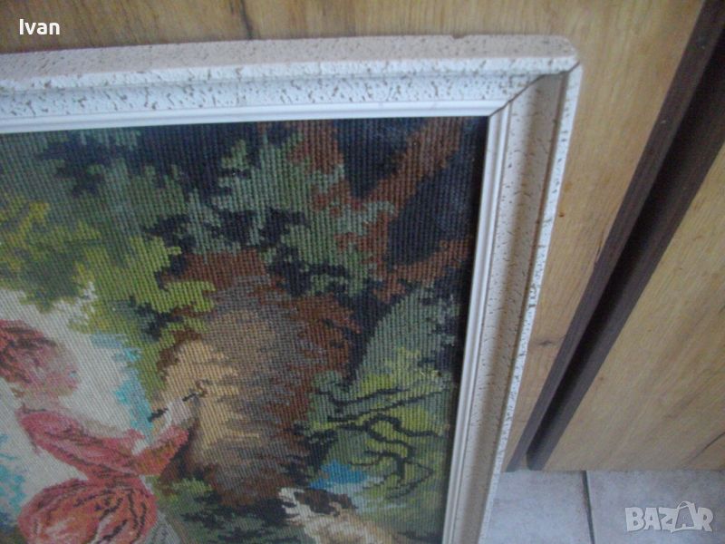 ЗАБЕЛЕЖКА - гоблена има на две места съвсем леки изпуснати квадратчета или протъркваане на квадратчета - 2 места по 2-3 мм, което се забелязва само от съвсем блиизко разстояние. На последните 2 снимки показвам забележките. Ниската цена на гоблена е събразена с леките забележки по бродерията.