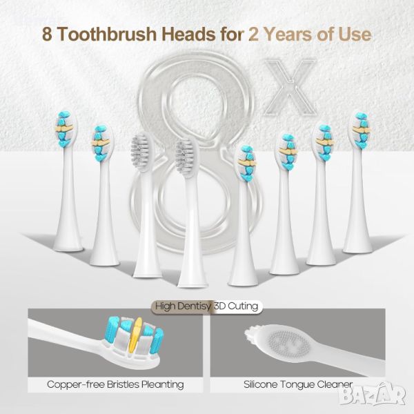 Електрическата четка за зъби разполага със сензор за напомняне за натиск, за да предпази чувствителните венци от прекомерно четкане, с 5 режима, включително избелване, полиране и подобряване на здравето на венците. Осигурява 40 000 вибрации/мин за 10 пъти по-добро отстраняване на плаката в сравнение с ръчните четки, осигурявайки цялостно почистване за по-здрава усмивка. Функцията за 3-секундно постепенно усилване предотвратява пръскането на паста за зъби, а безшевният, ергономичен дизайн на бутоните насърчава научните навици за четкане и лесното почистване. Включва 8 глави за четки, издържащи над 2 години, осигуряващи дългосрочна стойност.