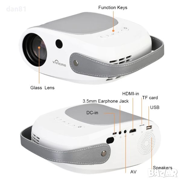 Проектор за домашно кино, Vivicine 720p HD видео, HDMI USB PC 1080p за филми, игри , мачове.