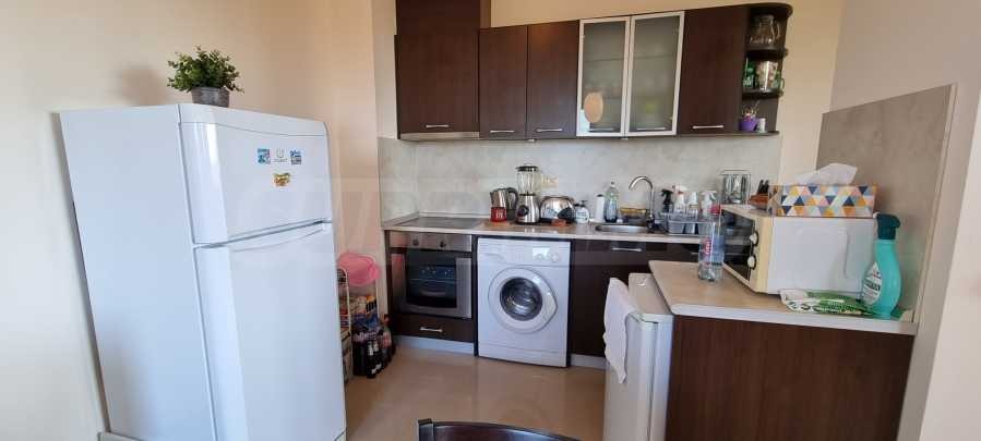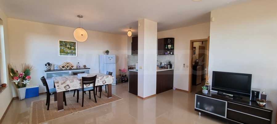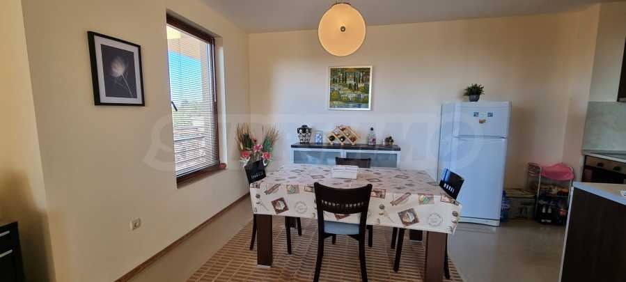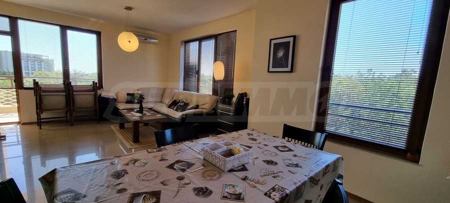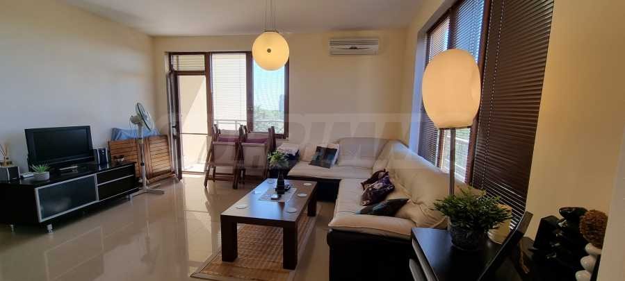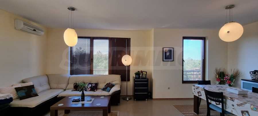 Имотът от 101.82 кв.м е много светъл, с гледка към зелената гора. Продава се напълно обзаведен. Състои се от две спални, дневна с кухня, две бани, едната от които с вана.