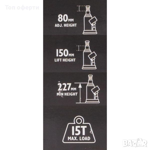 Хидравличен крик JCB ТH91504, тип бутилка, 15т