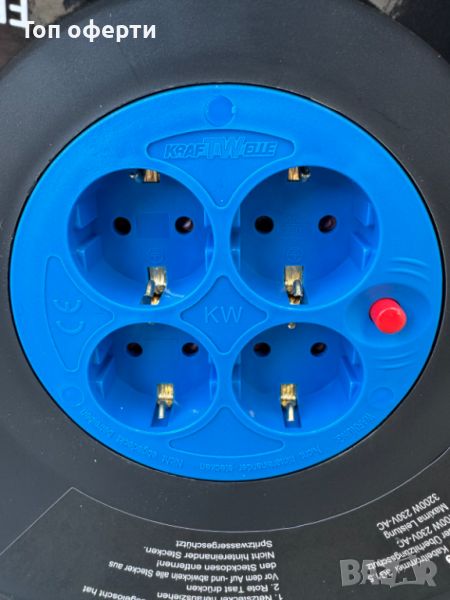 Удължител на макара с кабел KRAFTWELLE има дължина на кабела 50 м, като напречното сечение на проводника е 3 x 1.5 мм². Изработена е в син цвят, за да се вижда ясно в тревата и това значително намалява риска от случайни повреди. Подходяща е за захранване на няколко устройства едновременно. Максималното натоварване на размотания кабел е 14 А. Ако се използва частично навит кабел, максималното натоварване се намалява до 4,5 А, поради индукцията на кабела.