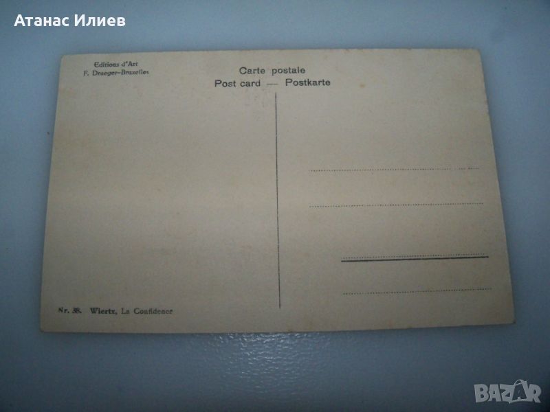 Стара пощенска картичка еротика изкуство от музея Виерц в Брюксел, 1915г. La Confidence.