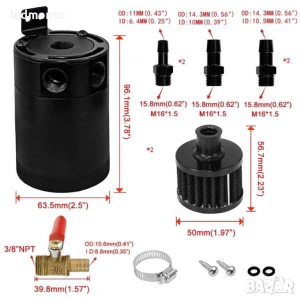 Универсален филтър картер Алуминиев Маслен Капан с Вентилационен Филтър филтър картерни газове