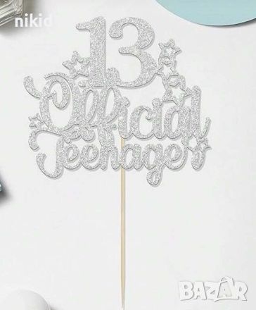 13 Official Teenager години Тийнейджър брокатен картонен топер за торта табела украса рожден ден → Обява 46518110