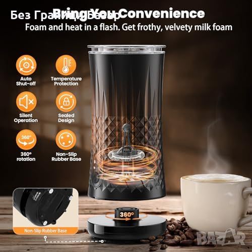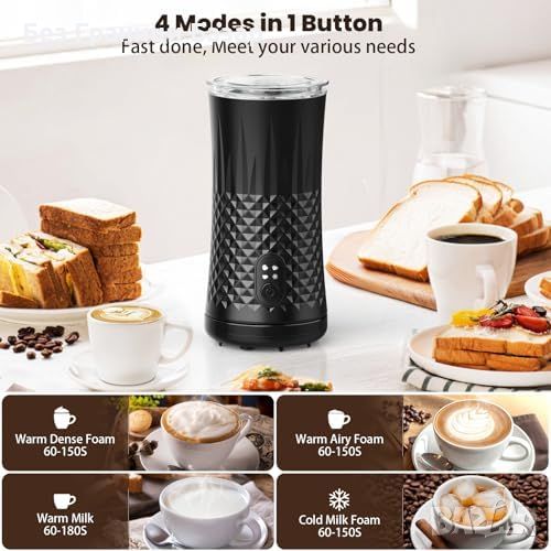 Многофункционален 4-в-1 млечен пенител: прави плътна, пухкава и топла млечна пяна, топло и студено мляко.