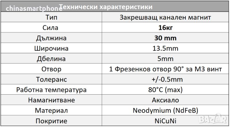 55 € - 50x30mm, N52, (НАЙ-КУПУВАНИЯ) (2800 Gs -3600 Gs)(0-160kg.)