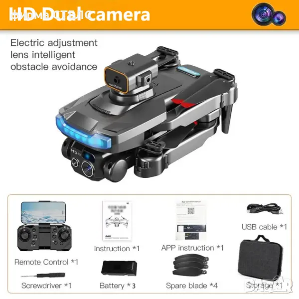 1080p широкоъгълна предна камера. Ъгълът на снимане може да се регулира от контролера. 1080р долна камера.