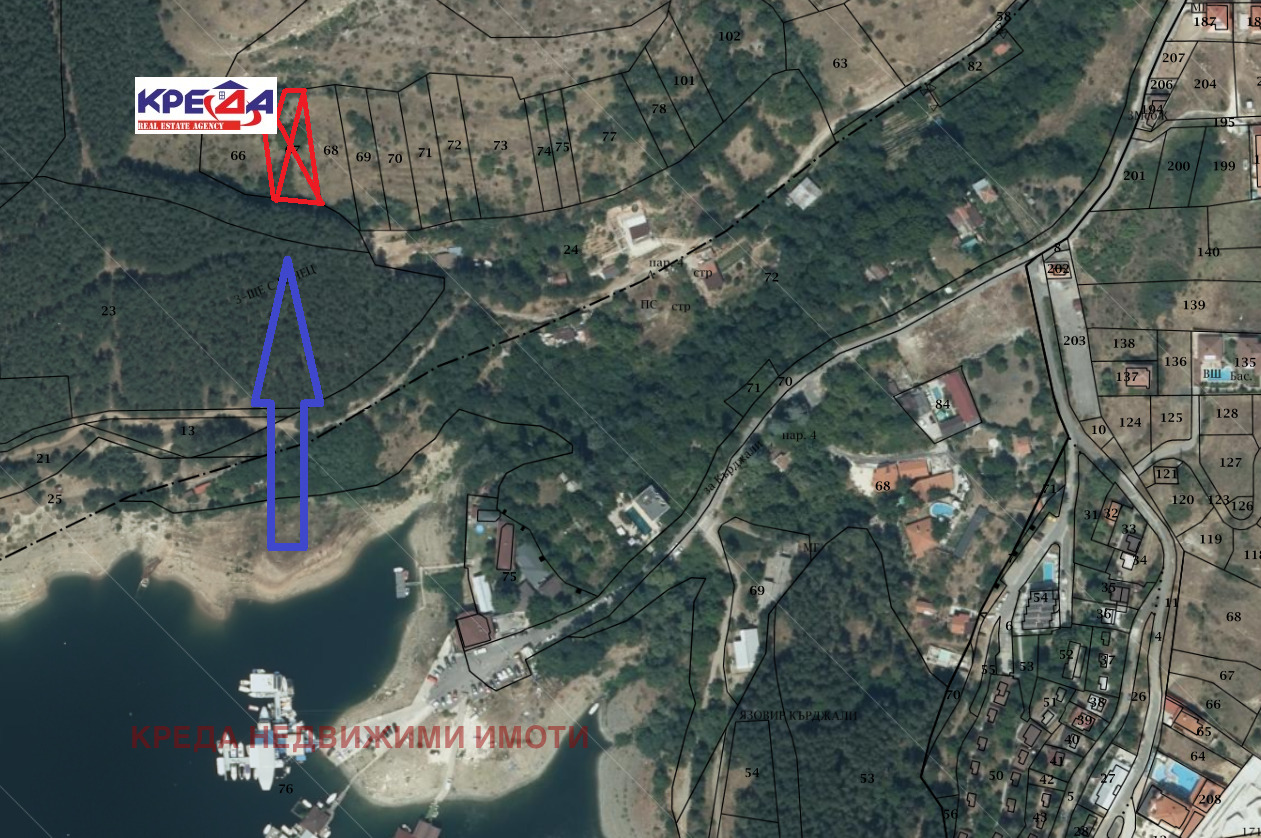 Предлагаме следния поземлен имот разположен на брега на язовир Кърджали с площ от 1000 м2.