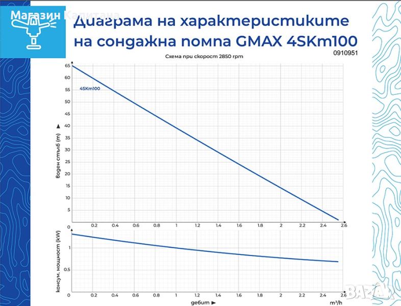 Сондажна водна помпа Gmax 4SKM100 100 мм., 61 м, 2,5 м³/ч - 1 ’’