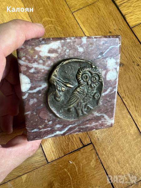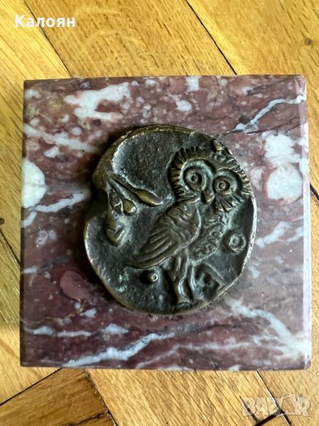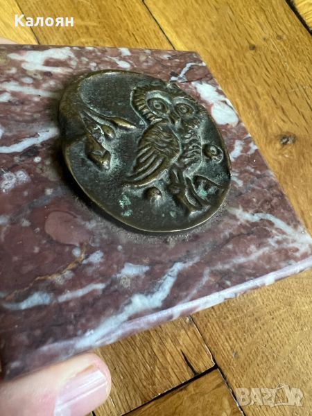 Бронзова сова - Медална пластика върху мраморен постамент → Обява 46522898