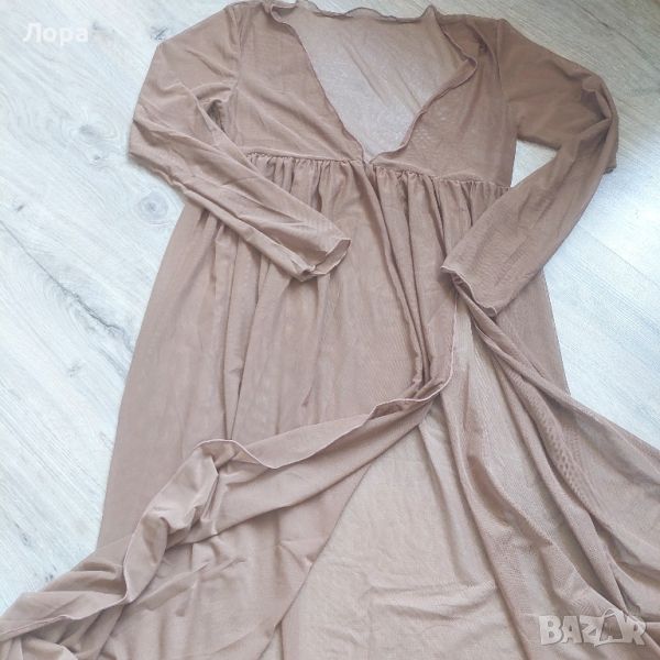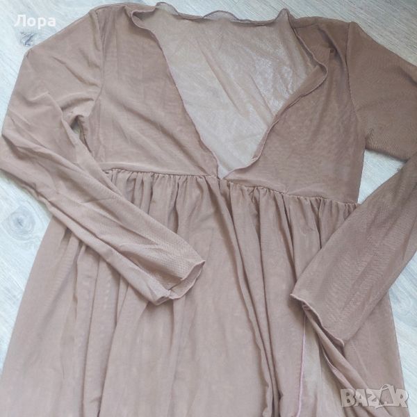 Дълга дамска туника подходяща за плаж.Прозрачна и много еластична материя. Размери ширина от мишница до мишница 44 см. Дължина на туниката 137 см. С големи цепка. Неразличима от нова.