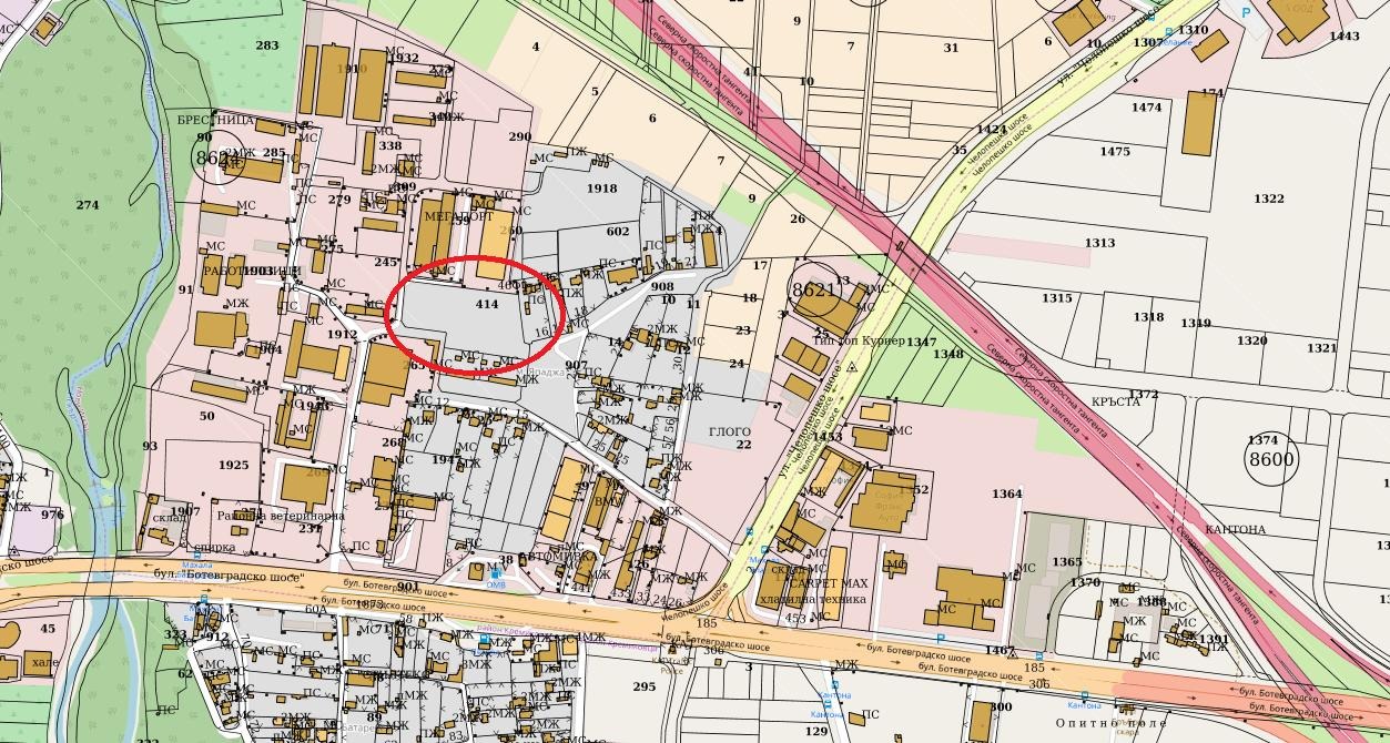 Имотът попада в устройствена зона Пмс(за малки и средни производства) с показатели: