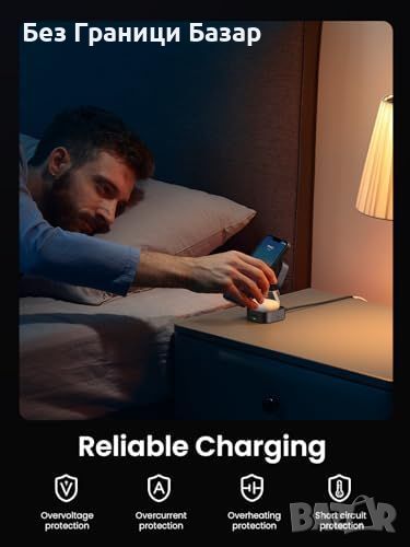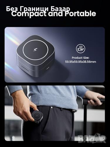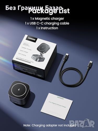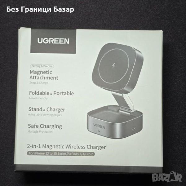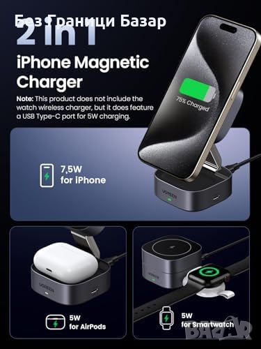 Ново Безжично Сгъваемо Магнитно Зарядно UGREEN за iPhone iWatch Айфон