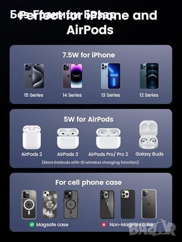 Съвместимо с iPhone 15/14/13/12 серии и AirPods Pro/3/2