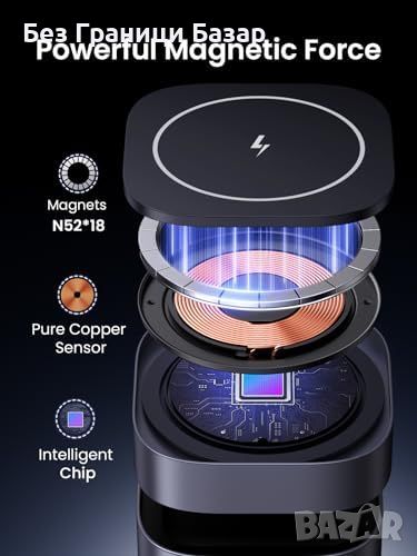 Вграден мощен магнитен пръстен за стабилно зареждане