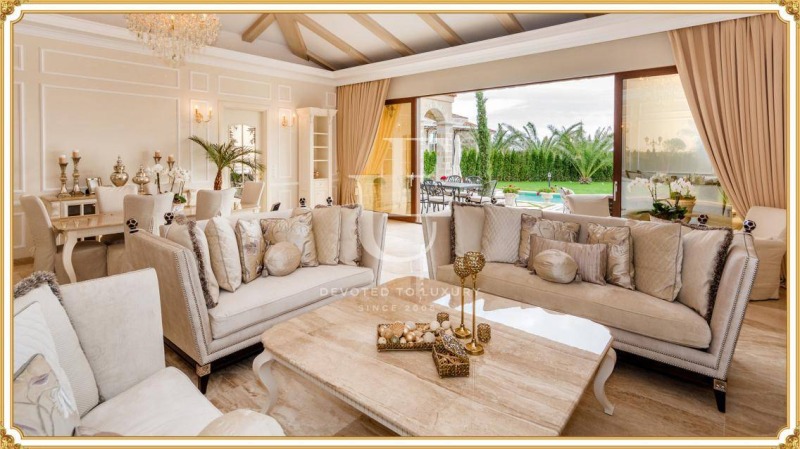 Просторен луксозно обзаведен хол с трапезария и кухненски бокс с излаз на тераса и басейна , три спални , две бани. Цената е без включен ДДС. Ref. ID:9005