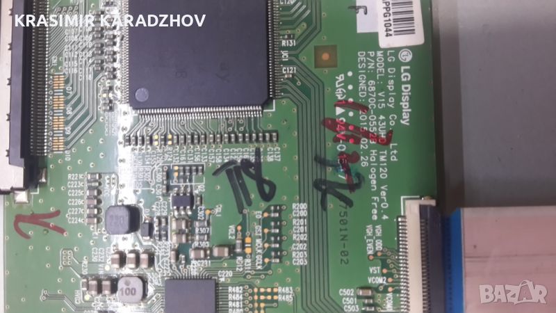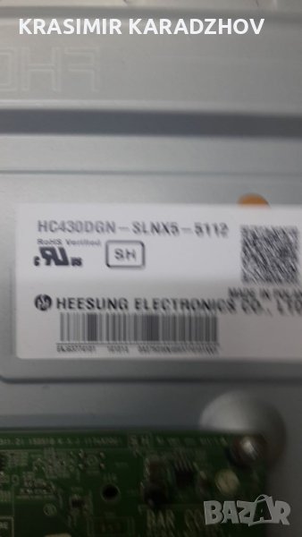 Панел HC 430 DGN -SLNX5 - 5112 със счупена матрица 1.Подсветка в комплект с тавата -------------70.00 лв 2.Майн борд EAX66524703 (1.2) EBT64023202 ------------ 170.00 лв 3.Захранващ борд EAX66472001 (1.5) --------- 80.00лв 4.T-con P/ N 6870С-0552В ----------50.00 лв --------50.00 лв 5.Тонколони 6 ом 10 W -----------20.00 лв 6.IR- приемник +бутон + Wi -Fi модул ------------30.00 лв 7.LVDS кабел ------------ 10.00 лв