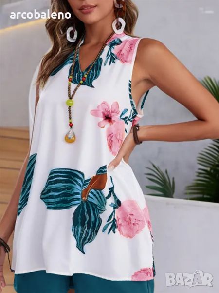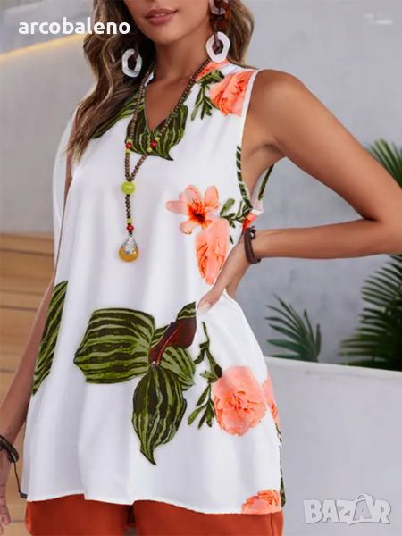 Дамски ежедневен ваканционен комплект горнище и къси панталони с принт