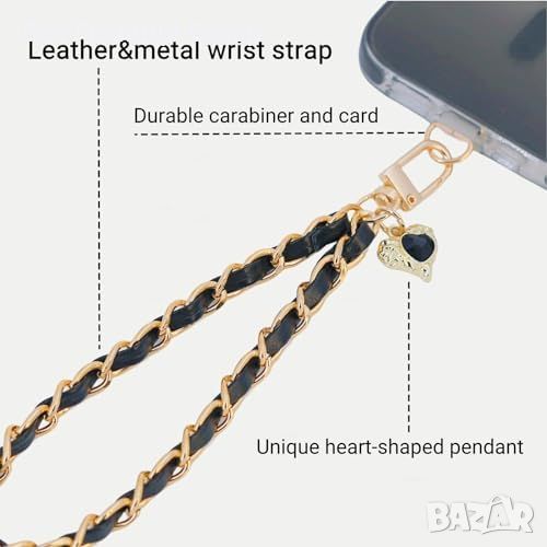 Нови Елегантни кожени и метални ремъци за телефон - 2 броя (черен и розов)