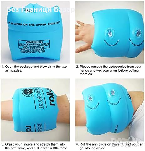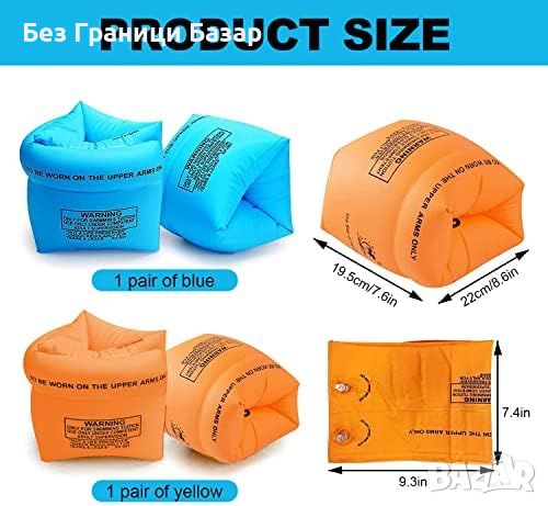 Комплектът включва: 4 бр. плувни ръкавели и 2 бр. щипки за нос.
