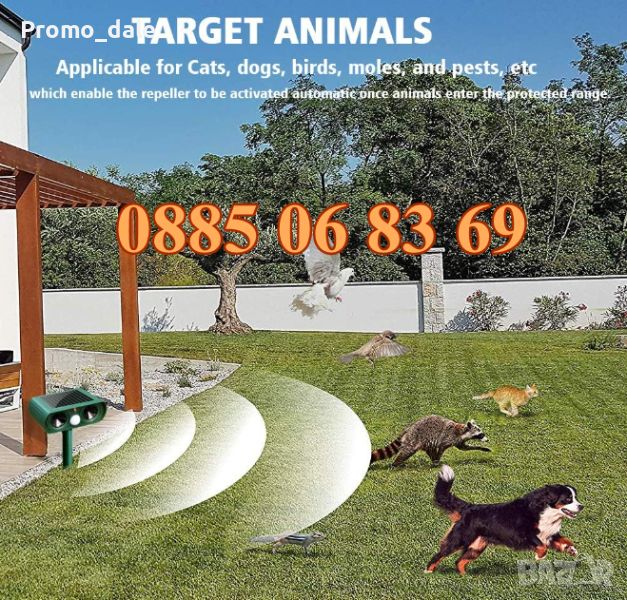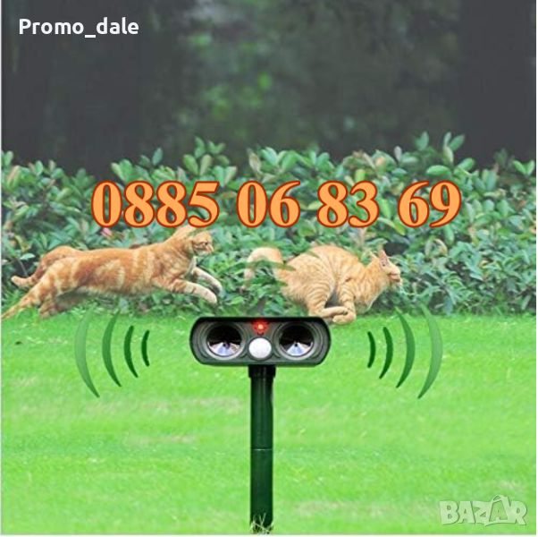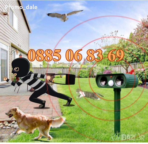 Прогонете нежеланите животни от своята градина и двор с новия соларен ултразвуков уред с фотоклетка. Той ще отблъсне животните като: котки, кучета, птици, лисици, мечки, елени, гризачи и влечуги.