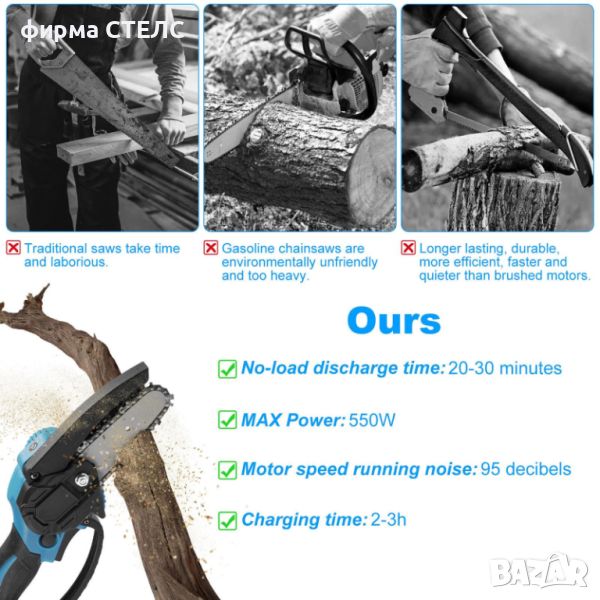 ръчен верижен трион с тегло само около 700 гр. и обща дължина от само 33 см.