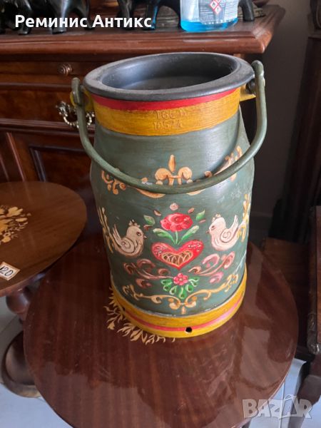 Представяме ви едно много красиво, Баварско ръчно рисувано ведро за мляко. Височина 50см. диаметър в основата 27см. Цена 200лв.