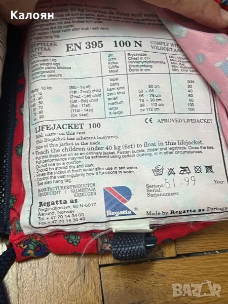 Детска спасителна жилетка - за дете от 5 до 15 кг. → Обява 46534380