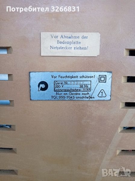 грамофона е произведен в ГДР , не е внасян България официално, този е купен в ГДР през 1976 година, усилвателя работи перфектно, не мога да пусна плоча , защото не иска да завърти - трябва му някаква профилактика, колоните работят перфектно, масата на която го виждате също се продава 80/45/52 см. и струва 130 евро, само лично предаване, никакви куриери !