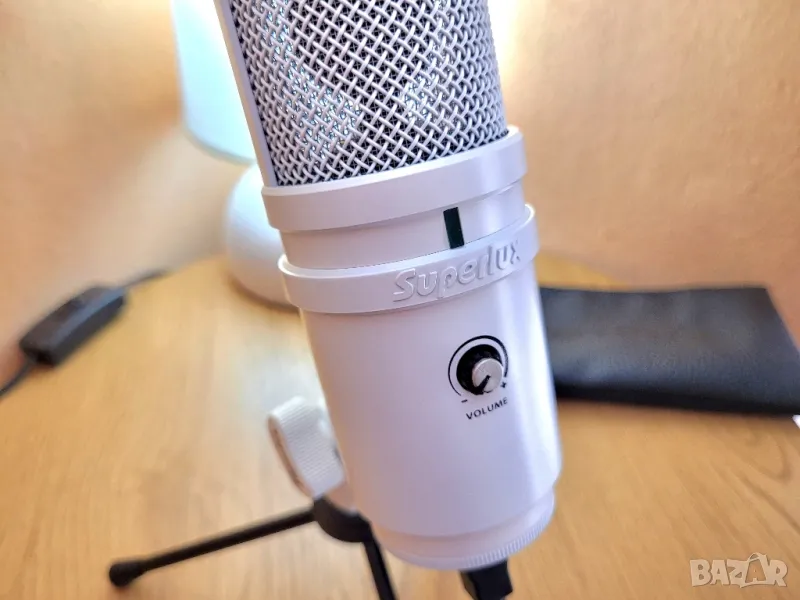 Ползван точно 1 месец. Продава се поради ъпгрейд към доста по-скъп вариант.--Superlux E205UMKII е ъпгрейдната версия на кондензаторния микрофон E205U, който е специализиран в предоставянето на аудио с висока разделителна способност и широка честотна характеристика.Superlux E205UMKII е подобрената версия на кондензаторния микрофон E205U, който е специализиран в предоставянето на аудио с висока разделителна способност и широка честотна характеристика. E205UMKII е подходящ за подкастинг и лични записи.Оборудван е с гнездо за слушалки и контрол за усилване на тяхната сила на звука, което прави работата в реално време по-лесна и добра. E205UMKII е съвместим с Windows и Mac OS системи.Допълнителни характеристики:Тип: Заден електретен кондензатор;Макс. SPL:>135 dB SPL;Изисквания за захранване: USB 5V;Разделителна способност: До 24 бита / 96k Hz честота на дискретизация.