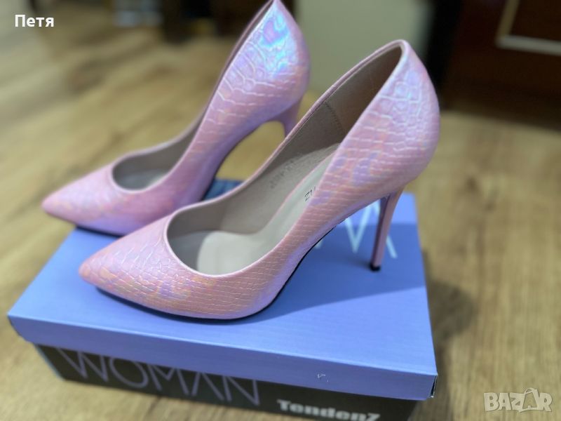 Елегантни обувки с висок ток. Обувани веднъж, без забележки. Уникален преливащ цвят хамелеон. 39 номер. Височина на тока- 10см.