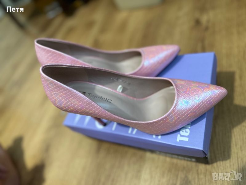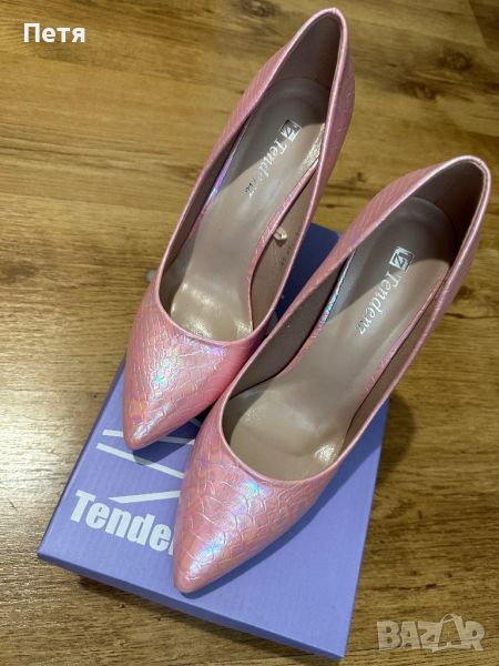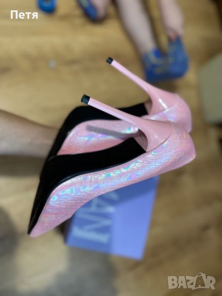 Дамски остри елегантни обувки с тънък ток в цвят розов хамелеон → Обява 46536713