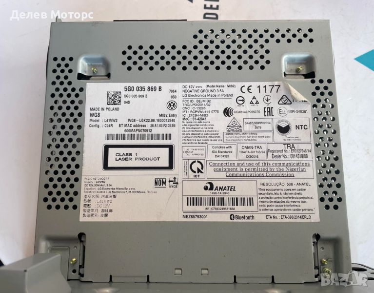 5G0035869B радио управление от Volkswagen T-Roc 2.0 TDI 4 Motion, 150 ph, engine DFFA, 6 sp, 2018г. в автоморга Delev Motors, между с. Каменар и с. Куманово гр. Варна. ВСИЧКИ ЦЕНИ СА С ВКЛЮЧЕНО ДДС. ВСИЧКИ ЧАСТИ СА С 14 ДНИ ПРАВО НА ВРЪЩАНЕ. Изпращане на части чрез наложен платеж с куриер за цялата страна, получаване на следващият ден. Доставката е за сметка на КУПУВАЧА. Изкупуване на западни и японски автомобили, джипове и бусове след 2015 г. за части. Издаване на удостоверение за бракуване пред КАТ. РАБОТНО ВРЕМЕ ОТ ПОНЕДЕЛНИК ДО ПЕТЪК от 9.00 ч. до 18.00 ч., СЪБОТА ОТ 9.00 ч. ДО 14.00 ч., ПОЧИВЕН ДЕН НЕДЕЛЯ. За контакти: 0897852371