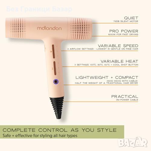 Нов Лек професионален сешоар за коса 1600W mdlondon Blow - Награден модел