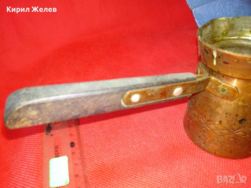 Старо МЕДНО ДЖЕЗВЕ за КАФЕ КОВАНА МЕД Дръжка ДЪРВО 100% РЪЧНА МАЙСТОРСКА ТРАДИЦИОННА ИЗРАБОТКА 22522