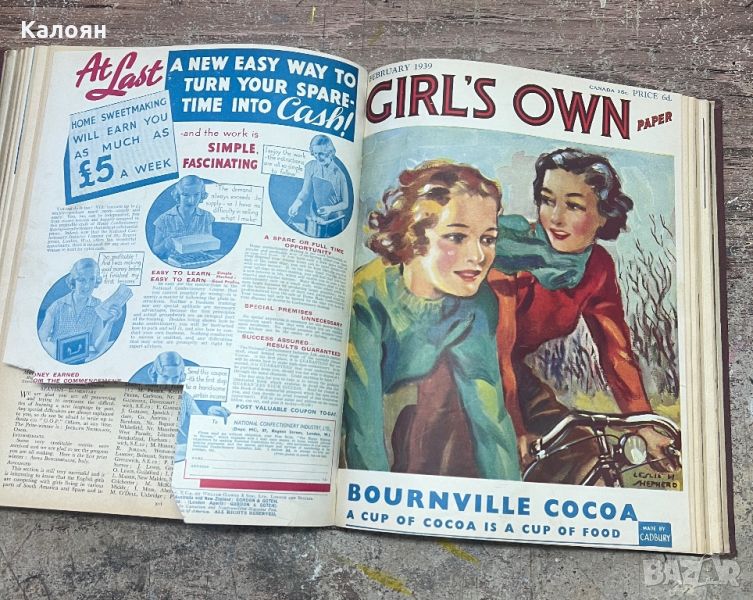 Стари английски списания GIRL’S OWN от 1938-39 събрани в албум/ Подвързани от книговезница “модерно изкуство” Д.К. Караджовъ ул. Графъ Игнатиевъ 33 / около 360 страници в много добро състояние за времето си - цената е за целия албум