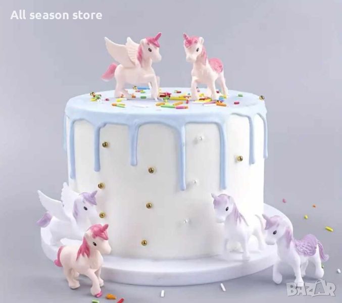 3 броя фигурки топер Unicorn еднорог в розово/лилаво за декорация на торта → Обява 46544934