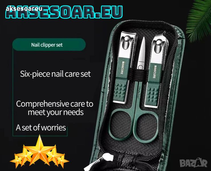 за рязане на нокти решава всички проблеми с маникюра, лесен е за носене и не заема място. Прибрани са в удобен кожен компактен несесер.