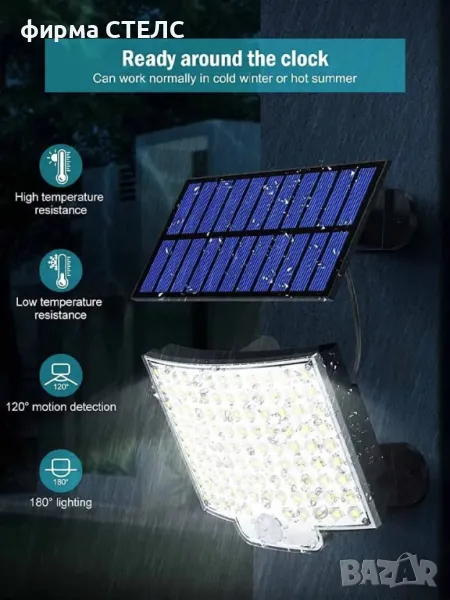 Външен прожектор захранващ се от слънчева светлина. 118 LED светлини.