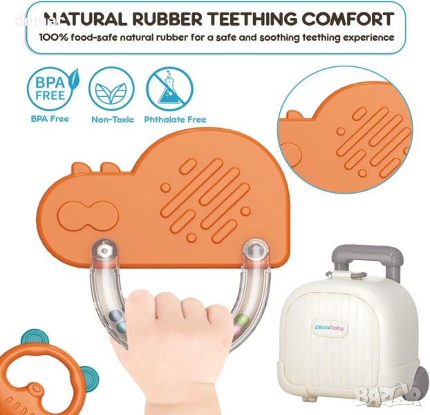 PiccaBaby Комплект гризалки и дрънкалки за бебета с калъф за носене, без бисфенол А