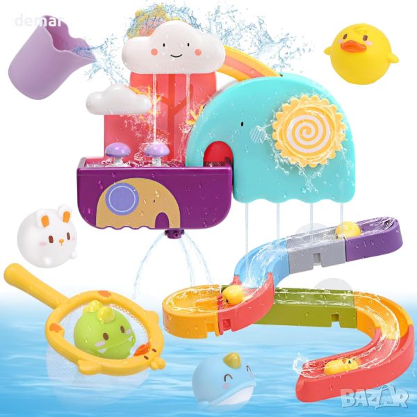 Превърнете времето за къпане във вълшебно приключение с нашия цветен комплект играчки за баня! Налейте вода в облака, за да видите как слънцето се върти, гъбите изгряват и слонът пръска вода, създавайки радостни, динамични взаимодействия. Децата могат да проектират уникални водни пързалки върху плочки или стъкло, гледайки как малки патета се плъзгат надолу, задвижвани от водна мелница, насърчавайки креативността и фините двигателни умения. Мрежата за риболов на патици, със своя сладък дизайн, помага за развитието на координацията око-ръка. Изработени от мека, издръжлива гума, тези играчки са без дупки, за да предотвратят мухъл и да осигурят хигиена. Перфектен за преодоляване на страховете от къпане, този комплект прави баните забавни и образователни, идеален за подарък.