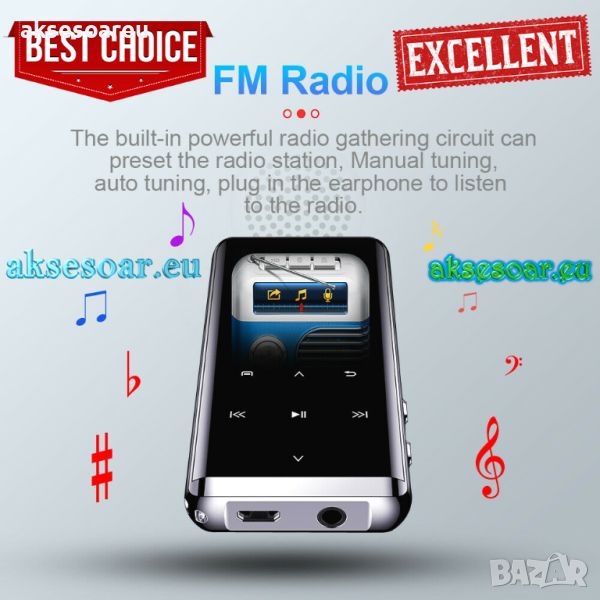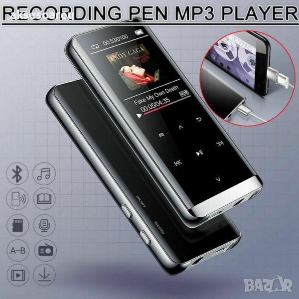 Нов Bluetooth MP3 плейър HIFI мп3 player за музика MP4 Media FM радио Рекордер микрофон LCD екран 8 → Обява 46550242